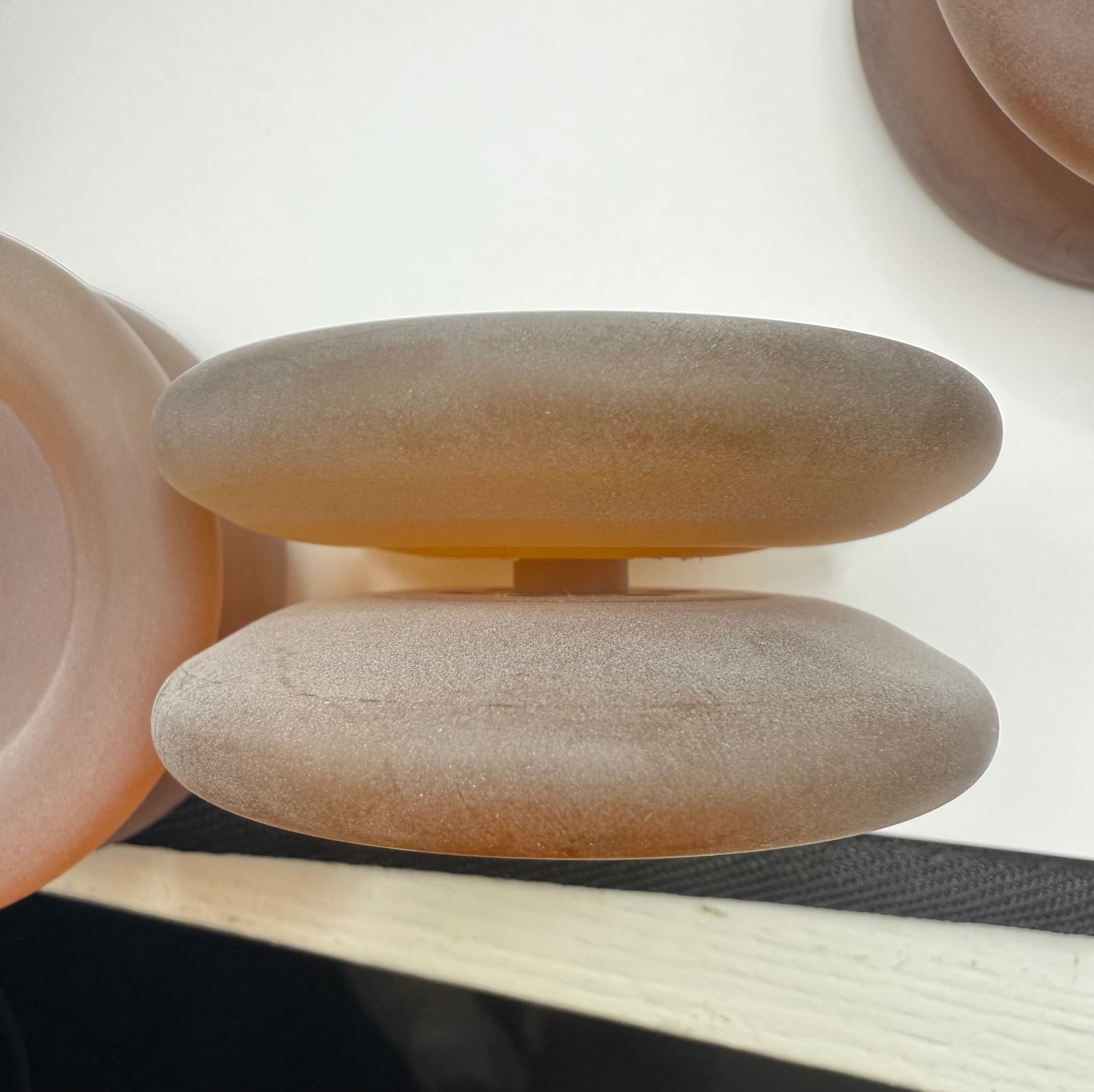 Well the caramels were delivered but the majority of the ones I’ve checked so far look… not good. One half on each side of about half the ones I checked looks melted or mushy. They also didn’t bead blast between the gaps in any of them so it’s smooth and slippery in there.